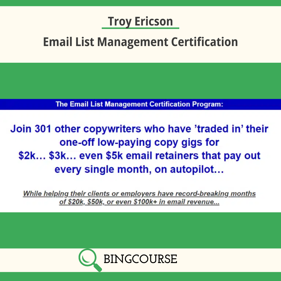 The Troy Ericson – Email List Management Certification is a groundbreaking training program designed to help copywriters and marketers transition from inconsistent, low-paying freelance work into $2,000–$5,000 monthly retainers with long-term clients. By combining copywriting, deliverability, and automation strategy, Troy Ericson provides a proven system that has generated over $3.6 million since 2020 for his own business and thousands of students worldwide.